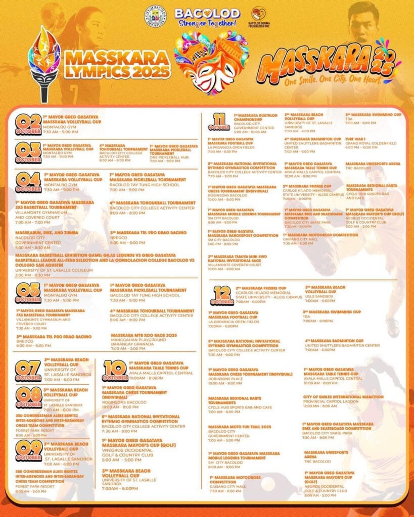 Planning a trip to Bacolod for MassKara 2025, or are you a local looking forward to joining in the festivities? Check out the schedule below.