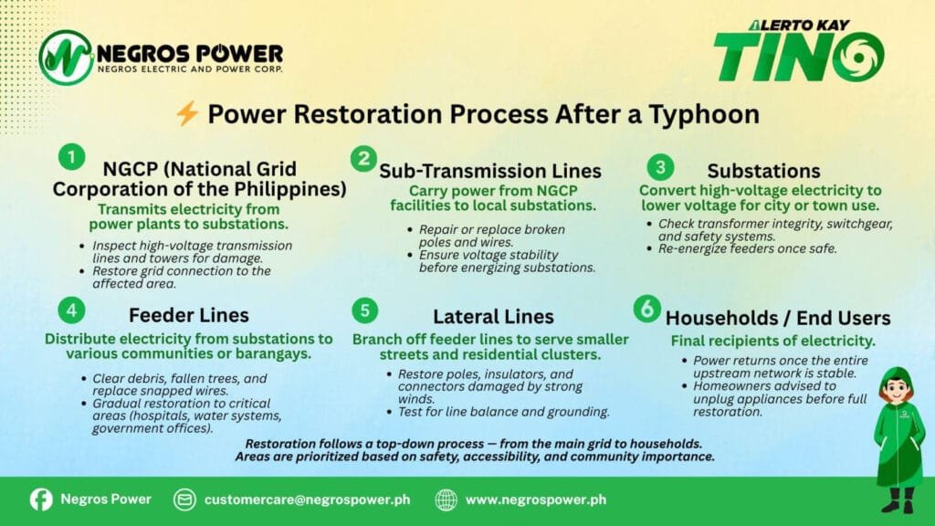 Here is the process of power restoration, as explained by Negros Power: